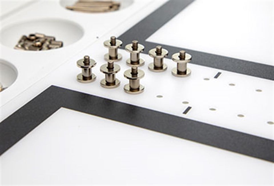 -Pimler (mandallar), bilezikler ve rondelalar, test tahtasının üst kısmındaki kaplara yerleştirilir